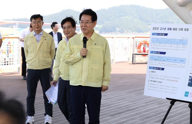 강진원 군수는 “강진군에서는 고수온에 대비해, 실시간으로 수온 정보를 제공하는 등 양식 전복을 지키기 위해 최선의 노력을 다하고 있다”며 “어민들께서도 특히 8월 한달간 고수온 피해가 발생하지 않도록 사전 조치에 적극 나서줄 것”을 강조했다.