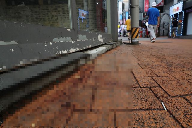 신림동 칼부림 사건현장에 남아있는 핏자국 / 뉴스1