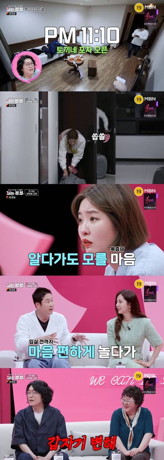 31일 방송된 MBN 예능 프로그램 '쉬는 부부'에서는 '개인의 방'과 '부부의 방' 중 하나를 선택해 각방과 합방을 결정하는 미션을 줬다.