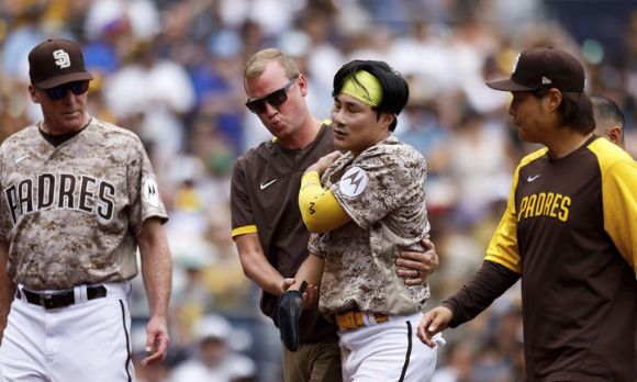 하지만 어깨 통증을 호소했고 트레이너가 나와 몸 상태를 살폈다. 김하성은 결국 해당 이닝 종료 후 교체돼 이날 경기를 먼저 마쳤다.