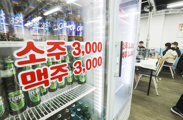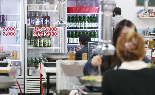 경기도의 한 음식점에서 소주와 맥주를 3000원에 팔고 있는 모습