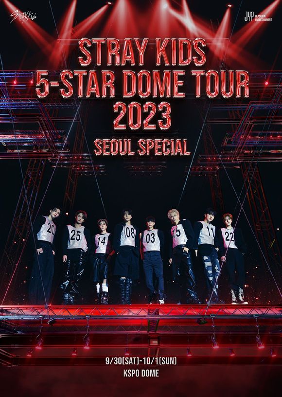 JYP엔터테인먼트는 최근 공식 SNS 채널에 스트레이 키즈 데뷔 첫 돔 투어 'Stray Kids 5-STAR Dome Tour 2023'(파이브스타 돔 투어 2023) 개최 소식을 발표했다. 이들은 오는 8월 16일~17일 일본 후쿠오카 페이페이 돔을 시작으로 9월 2일~3일 반테린 돔 나고야, 9일~10일 교세라 돔 오사카, 10월 28일~29일 도쿄 돔에서 대규모 돔 투어를 전개하고 K팝 4세대 보이그룹 최초로 일본 4대 돔 공연장에 입성한다.