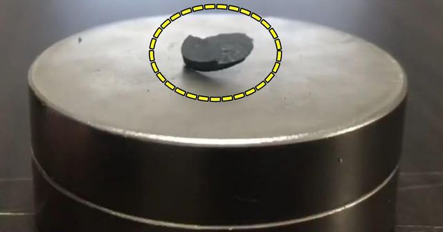 자석 위에 초전도체가 반쯤 떠 있는 모습. 김현탁 박사 이름으로 사이언스 캐스트에 올라온 영상을 캡처한 사진. / 사이언스 캐스트