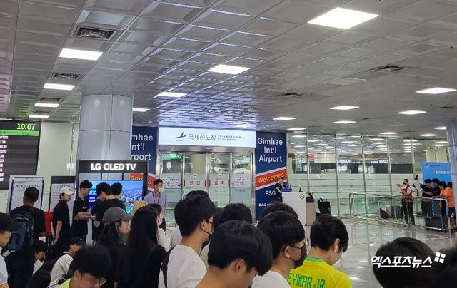 (엑스포츠뉴스 김해국제공항, 이현석 기자) 이강인과 PSG 선수단을 기다리는 팬들로 이미 공항은 북새통이다.