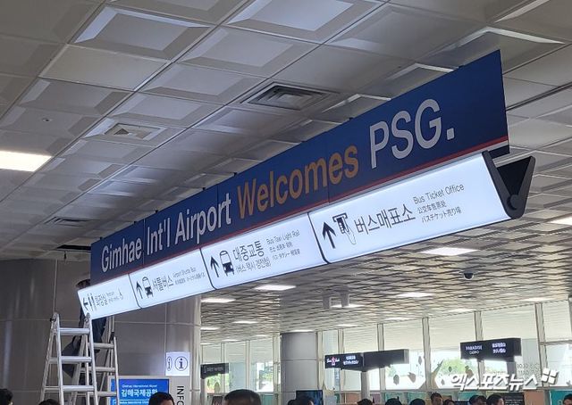 김해국제공항도 선수들을 맞이할 준비를 마쳤다. "김해국제공항이 PSG를 환영한다"라는 문구의 팻말이 게이트에서 나오자마자 볼 수 있는 위치에 자리했다. PSG와 이강인이 나올 것으로 예정된 게이트 옆에도 환영 문구가 적혀 있어, 이번 PSG 선수단의 방문이 얼마나 큰 관심을 받는 행사인지를 증명했다.