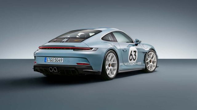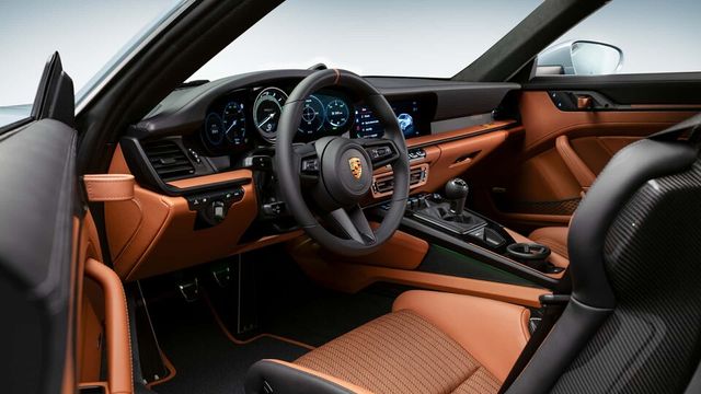 이 밖에도, 클래식 코냑 컬러가 적용된 천 소재의 시트 센터가 특징으로, 이는 브랜드 헤리티지에 대한 또 다른 오마주 요소다. 블랙/클래식 코냑 가죽에 투 톤 세미 아닐린 가죽 트림, 다이나미카 소재의 타공 패턴 루프 라이닝과 포르쉐 익스클루시브 매뉴팩쳐의 다양한 요소들이 패키지를 완성한다. 차량 후면의 포르쉐 로고와 911 S/T 모델 레터링은 골드 컬러로 장식된다.