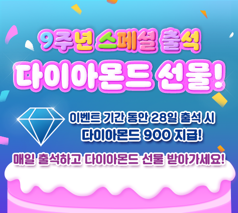 이와 더불어 9주년 이벤트 기간 동안 한정으로 판매되는 특별 상품이 상점에 업데이트 되며, 게임 플레이를 통해 생일 선물을 수집하고 상자를 오픈하면 리듬포인트, 다이아 등 인게임 재화를 획득할 수 있는 수집 이벤트도 함께 진행된다.
