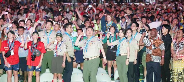 2日晚,在全罗北道扶安郡新万金举行的第25届世界童军大露营开营仪式上,韩国总统尹锡悦和夫人金建希与各国青少年放飞纸飞机。本届世界童军大露营是新冠疫情后首个大规模国际青少年活动,来自全球158个国家和地区的4.3万多人参加,活动将持续至本月12日。