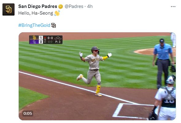 7회초 네번째 타석에선 2루 땅볼로 물러났다. 이날 경기에서 유일하게 출루하지 못한 타석이었다. 마지막 타석이었던 9회초에는 1사 2루에서 볼넷을 골랐다. 이후 페르난도 타티스 주니어의 3점 홈런이 터지면서 홈을 밟아 세번째 득점을 올렸다.