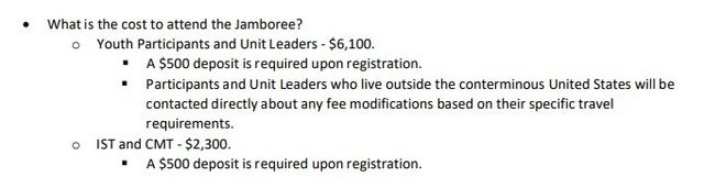 '새만금 잼버리 행사' 참가 비용 안내 / 미국 스카우트 연맹 홈페이지