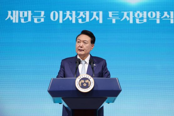 윤 대통령도 투자협약식에서 “이차전지는 반도체와 함께 핵심 전략자산이며 전 세계가 기술 패권 경쟁 중”이라며 “이차전지는 소재부터 완제품까지 튼튼한 생태계가 구축돼야 한다”고 당부했다. 이어 새만금 투자기업 및 전북기업인들과 함께한 ‘해물탕 만찬’에서 인프라 지원 요청을 받고 새만금개발청장에게 “최대한 기업들이 불편하지 않도록 지원할 수 있는 방안을 강구하라”고 지시하기도 했다.