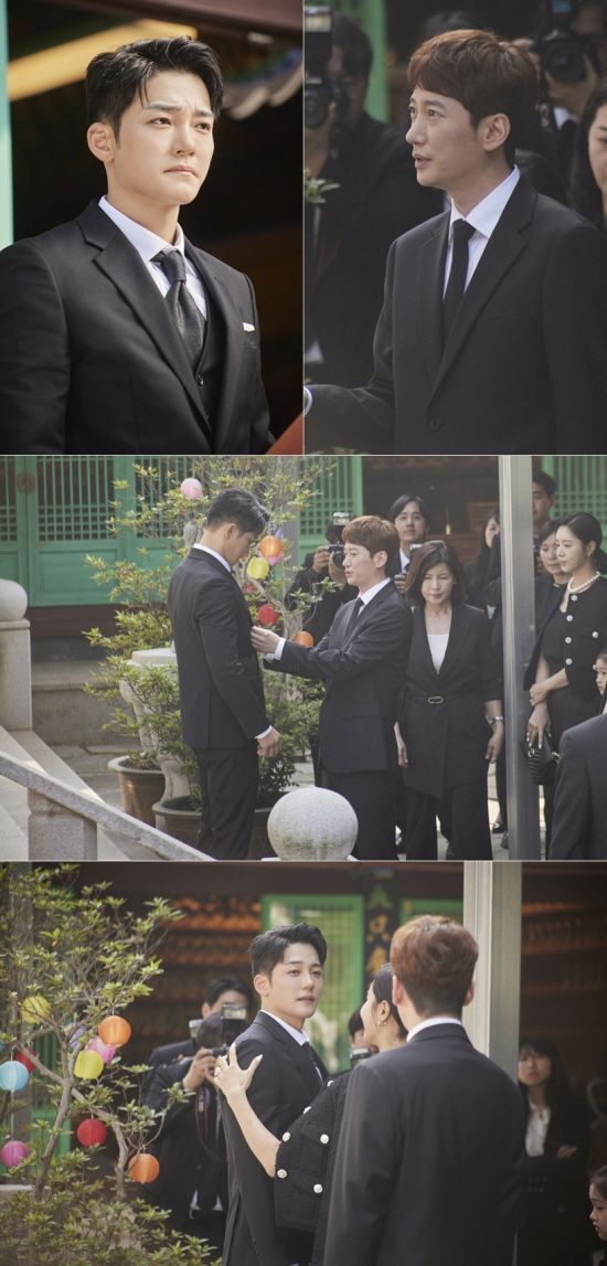 그런 장기윤을 찾아온 나승필은 겉으로는 장기윤의 옷매무새를 고쳐주며 위로하는 듯한 친밀한 모습을 보여주지만 이어진 클로즈업 사진에서는 맹렬하게 끓어오르는 적의를 가감없이 드러내 시선을 사로잡는다. 이에 장기윤 또한 카리스마 넘치는 살벌한 눈빛으로 응수하며 팽팽하게 맞서고 있다.