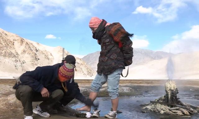 ‘인도 삼형제’는 해발 고도 4,400m 고원 중앙에 위치한 ‘푸가 온천’의 독특한 형태와 영화에서 볼 법한 비현실적인 풍광에 매료된다. 드넓은 대지에 드러누운 기안84와 멀리 펼쳐진 풍경을 눈에 담는 덱스, 그리고 바짓단을 걷어 ‘푸가 온천’에 입수(?)한 빠니보틀의 모습이 눈길을 사로잡는다. 빠니보틀은 따뜻한 온천수에서 발을 담그며 피로를 푼다.