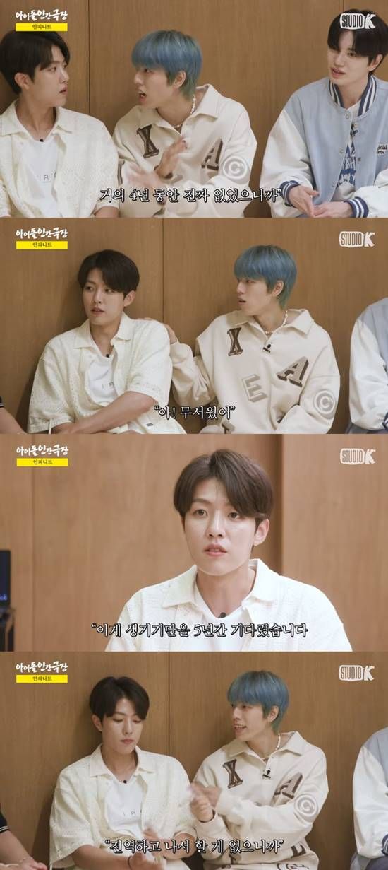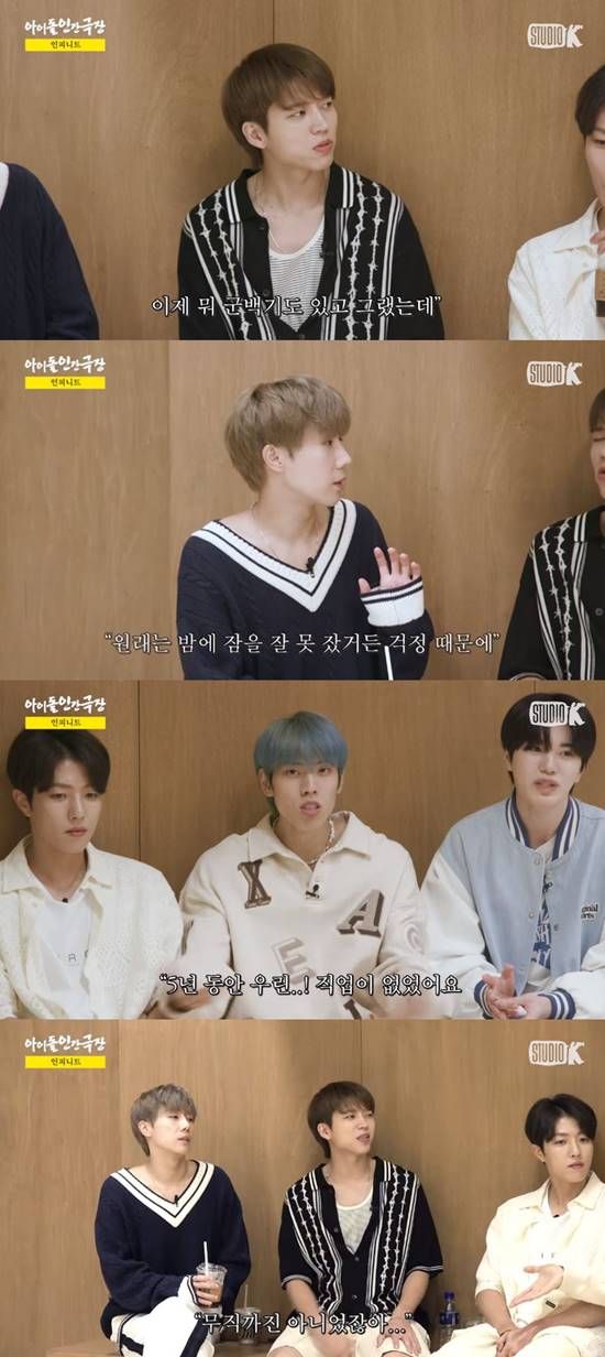 동우는 "많이 걱정됐었던 게 우리가 투잡, 쓰리잡이 아니라 하나의 일에 올인을 하지 않았었냐. 5년 동안 우린 직업이 없었다"라고 말하며 당시 심정을 전했다. 이에 멤버들은 "무직까진 아니었다"라고 선을 그어 웃음을 자아냈다.