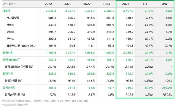 광고 사업 성장세가 다소 둔화했지만 올 하반기에는 경기 회복 기대감 등으로 상반기와 비슷한 수준의 성장세를 이어갈 것으로 전망됐다. 광고 매출이 주를 이루는 서치플랫폼의 올 2분기 매출은 전년 동기 대비 0.5% 증가한 9천104억원을 기록했다.