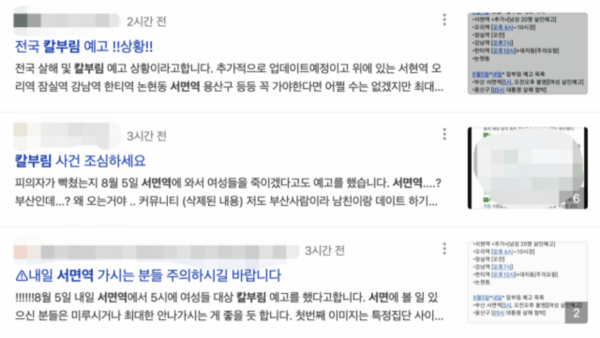 부산경찰청에 따르면 4일 오전 1시경 온라인 커뮤니티 ‘디시인사이드’ 게시판에는 오는 5일 부산 서면역에서 흉기를 휘두르겠다는 내용의 글이 게시됐다.