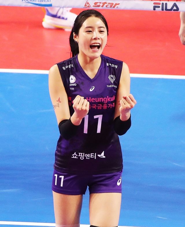 이다영이 2020년 11월 27일 경기도 화성종합경기타운 실내체육관에서 열린 프로배구 V리그 여자부 IBK기업은행 알토스와 흥국생명 핑크스파이더스의 경기에서 환호하고 있다.