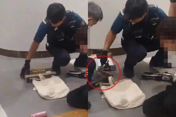 경찰은 A씨가 들고 다닌 가방과 상자를 확인하며 위험한 물건이 있는지 확인했다.