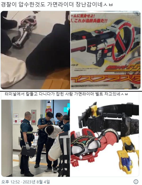 경찰이 압수한 것도 '가면라이더' 장난감이고 차고 있는 것도 '가면라이더'장난감으로 드러났다. 장난감 벨트에 장난감 총까지 풀장착을 하고 나타난 것이다.