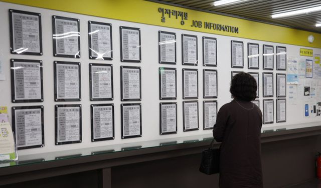 17일 서울 마포구 서부고용복지플러스센터에서 한 구직자가 일자리 정보 게시판을 살펴보고 있다. (사진=연합뉴스)