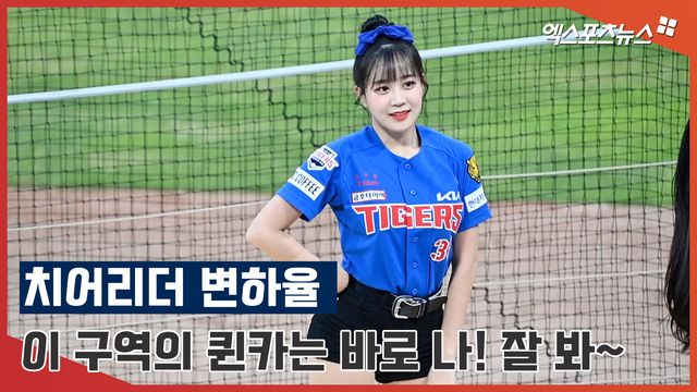 (엑스포츠뉴스 광주, 김한준 기자) 5일 오후 광주-KIA챔피언스필드에서 열린 '2023 신한은행 SOL KBO리그' 한화 이글스와 KIA 타이거즈의 경기, KIA 치어리더 변하율이 (여자)아이들의 퀸카 노래에 맞쳐 멋진 공연을 선보이고 있다.