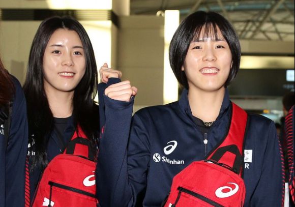 이재영(오른쪽)과 이다영이 지난 1월 태국에서 열린 2020 도쿄올림픽 여자배구 아시아 지역 최종예선전에 참가하기 위해 인천공항을 통해 출국 직전 함께 포즈를 취하고 있다. [사진=발리볼코리아닷컴]