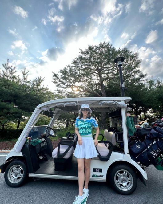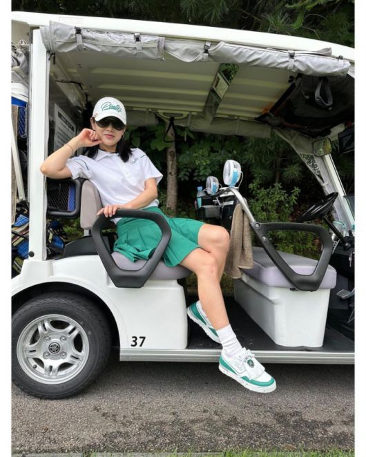 공개된 사진 속 손예진은 골프 카트에 기대어 늘씬한 각선미를 자랑했다. 반소매 셔츠에 짧은 치마를 입은 손예진은 모자를 푹 눌러쓰고 선글라스를 쓴 채 카메라를 향해 환하게 웃고 있는 모습이다. 여전한 미모와 화려한 골프 패션이 눈길을 사로잡는다.