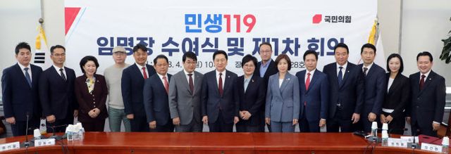 김기현 국민의힘 대표가 지난 4월3일 오전 서울 국회에서 열린 민생119 임명장 수여식 및 제1차 회의에서 조수진 위원장 등 위원들과 포즈를 취하고 있다. (사진=뉴스1)