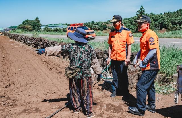 김수환 소방안전본부장은 지난 5일 제주시 구좌읍 내 농업지역을 찾아 '장시간·나홀로' 농작업 현황을 점검·계도하고 ▷농경지·비닐하우스 작업자 ▷공사장 야외근로자 ▷독거노인·장애인을 '3대 폭염 취약계층'으로 설정해 밀착 관리를 실시했다.