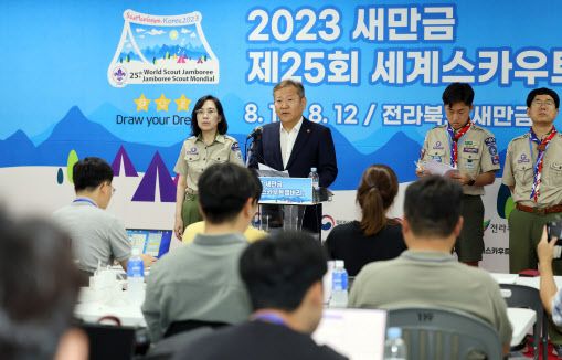 잼버리 조직위원회는 이날 오후 예정된 새만금 K-팝 콘서트는 취소하고 추후로 연기하기로 했다. 이와 관련 이 장관은 “안전에 관한 문제는 조금도 방심해선 안 되기 때문에 보다 쾌적하고 안전한 장소에서 콘서트를 즐길 수 있도록 만전을 기하겠다”고 설명했다.