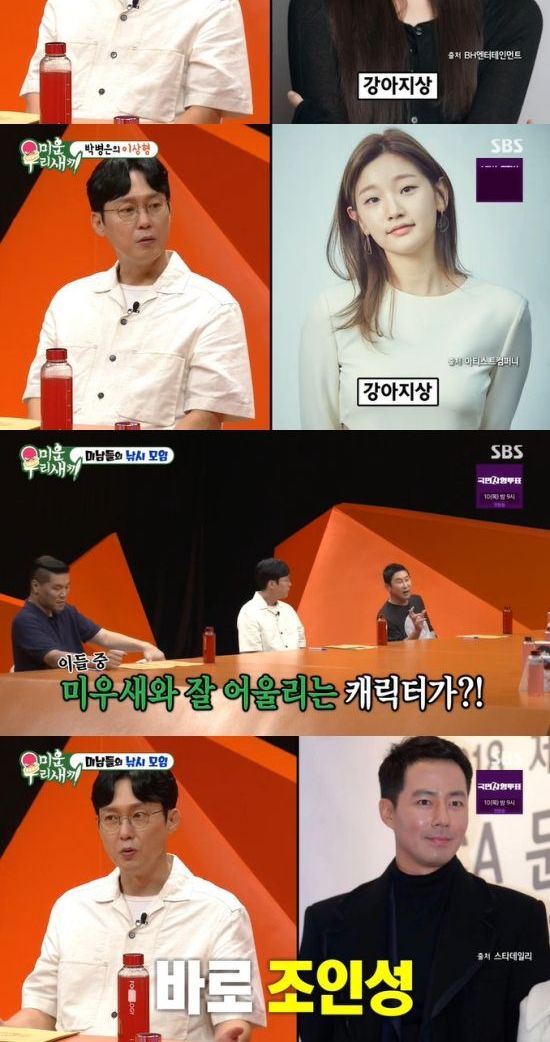 또 신동엽은 "낚시 메이트 명단이 굉장히 화려하다. 공유, 이동욱, 조인성. 이 중에서도 '미우새'와 잘 어울리는 캐릭터가 있다고 한다"라며 질문했고, 박병은은 "조인성 씨가 오면 어머님들이 너무 좋아하실 것 같다"라며 조인성을 꼽았다.