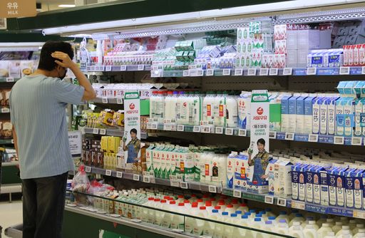 한 소비자가 국내 마트에 진열된 우유를 고심해 고르고 있다. (사진=연합뉴스)