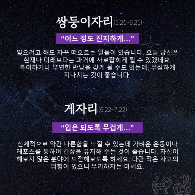 Δ 게자리 : 입은 되도록 무겁게…