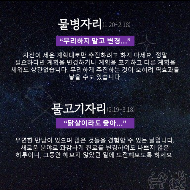 Δ 물병자리 : 무리하지 말고 변경…