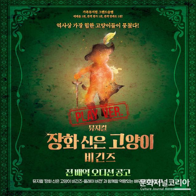 문화저널코리아 김영일 기자 | 가족 뮤지컬 '장화 신은 고양이 비긴즈-플레이 버전'이 전 배역 오디션을 개최한다.