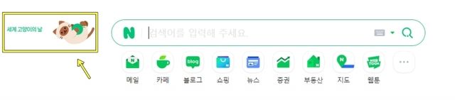 이날 네이버 메인 화면에는 '세계 고양이의 날'이라는 문구와 함께 움직이는 고양이 로고(배너)가 달렸다.