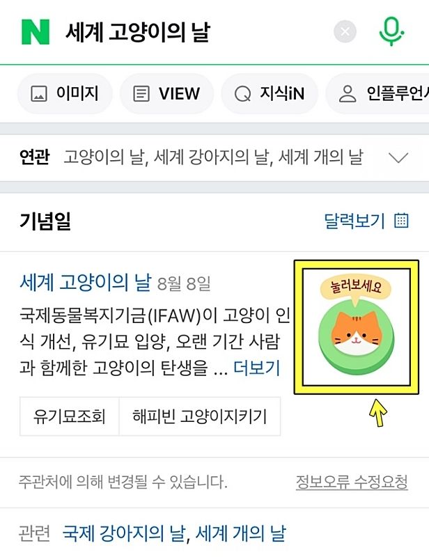 '세계 고양이의 날(International Cat Day)'을 맞아 포털 사이트가 깜짝 이벤트를 마련했다.