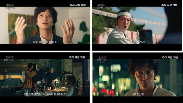 이어 함께 공개된 티저 예고편은 시작부터 현란한 언변으로 사람들을 현혹하는 ‘천박사’의 생동감 넘치는 활약이 담겨 유쾌한 웃음을 전한다. 새로운 의뢰인 ‘유경’(이솜 분)의 거부할 수 없는 제안에서 시작되는 예기치 못한 사건들은 영화 속에서 펼쳐질 스토리에 대한 궁금증과 호기심을 불러일으킨다. 여기에 ‘천박사’와 함께 진짜 사건에 뛰어든 ‘유경’, 천박사의 기술 담당 파트너 ‘인배’(이동휘 분), 천박사와 오랫동안 함께해온 골동품점 CEO ‘황사장’(김종수 분)까지 저마다의 능력을 갖춘 유쾌한 팀플레이를 기대케 한다. 특히 정체불명의 상대에 맞서는 ‘천박사’의 화려한 액션부터 이색적인 공간에서 느껴지는 신선한 볼거리는 올 추석 전 세대가 함께 즐길 풍성한 재미를 선사할 것이다. 또한 짧은 등장만으로 강력한 존재감을 발산하는 ‘범천’(허준호 분)이 정체를 궁금케하며 기대를 더욱 높인다.