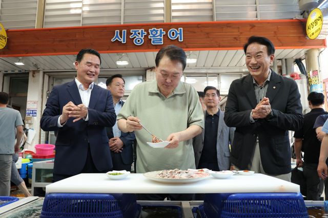 윤 대통령은 지난 3일 진해 해군기지에서 초계함 천안함을 상징하는 'pcc-772' 문구가 새겨진 모자와 천안함 티셔츠를 착용한 채로 해군 함정이 정박한 모항에서 복무 중인 장병들을 격려했다. 그리고 지난 4일에는 거제에서 가장 큰 전통시장인 고현종합시장을 방문해 시민들과 만났다.