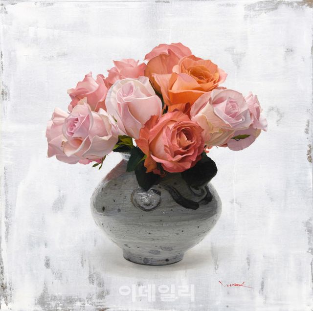 [이데일리 오현주 문화전문기자] 진중하고 투박한 도자, 게다가 무채색 화병이어서 더 도드라져 보이는 걸 거다. 그 속에 꽂힌 핑크빛 장미송이가 말이다. 물기 하나 없는 그래서 생기조차 말라버린 꽃이라 탓할 일은 아니다. 저들이 생화인지 조화인지는 아무도 모른다. 그저 작가 도진욱(42)의 꽃이니까.