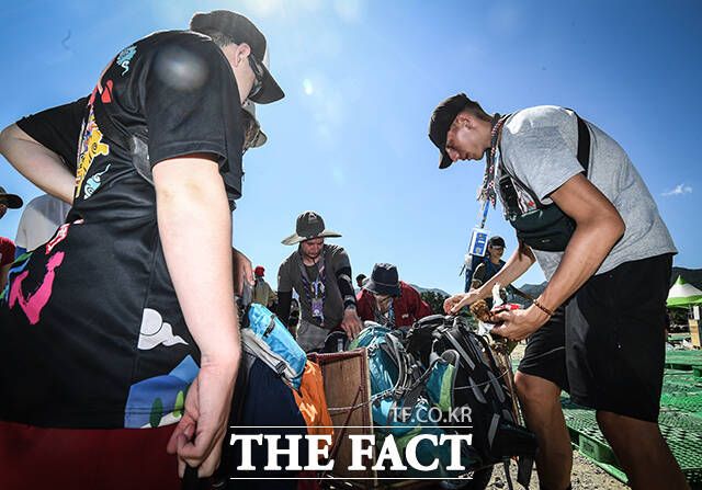 [더팩트ㅣ부안=이동률 기자] '2023 새만금 제25회 세계스카우트잼버리'의 조기 철수가 결정된 8일 전북 부안군 세계스카우트잼버리 야영지에서 세계 각국 대표단이 철수 작업을 하고 있다.