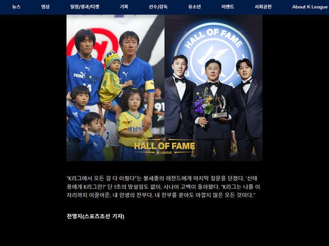 [인터풋볼] 김대식 기자 = ‘K리그 명예의 전당’에 헌액된 영광의 주인공들을 웹사이트에서 만날 수 있다.