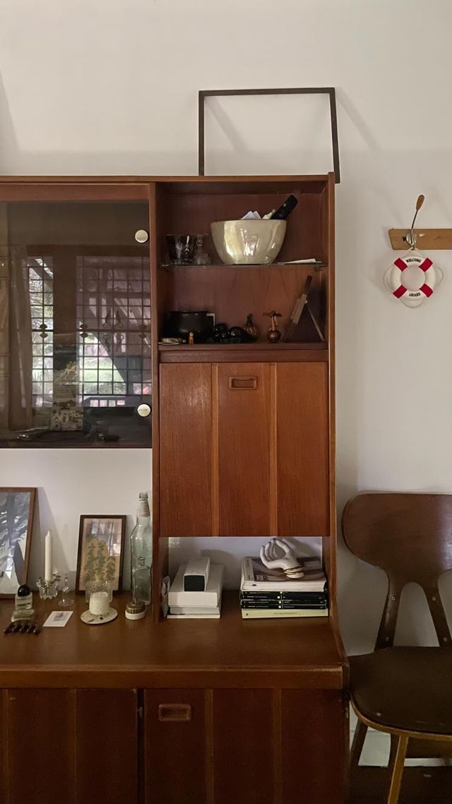 덴마크 빈티지 책장. 크기 때문에 방콕에서도 치앙마이에서도 옮길 때마다 고생을 안겨준 가구. 좁은 계단을 통과할 수 없는 사이즈라 뒤 판을 다 뜯고 분리해서 올린 후 다시 조립해서 배치해야 하는 불편함을 감수하고도 계속 가져가는 가구입니다. 이 지난한 과정에 오히려 더 정들었거든요.