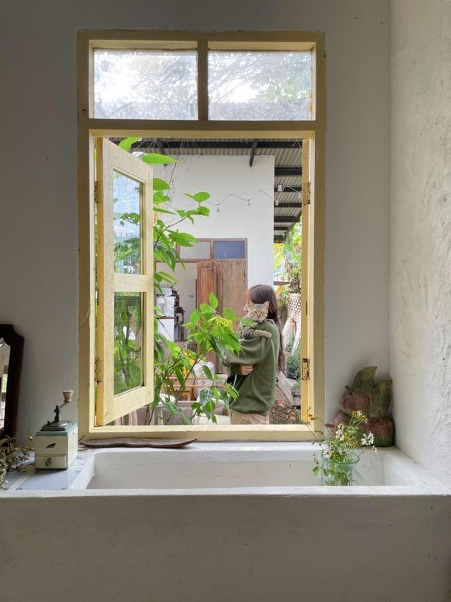 방콕에서 10년간 지내다가 작년 10월에 치앙마이로 이사를 오게 되었어요. 복잡하고 정신없는 대도시에서의 생활에 지쳐가던 중 치앙마이로 여행을 갔었는데, 앞으로의 삶을 이곳에서 보내고 싶다는 확신이 들더라고요. 집도 직접 지어보자는, 남편과 함께 건설적인 꿈도 꾸게 됐죠. 지금 지내고 있는 곳은 그 집을 건축하는 2년 동안만 머무르게 된 집인데요. 고양이 두 마리를 데리고 렌트를 알아보는 게 정말 쉽지 않았어요. 치앙마이 온 동네의 부동산 사이트를 전부 다 샅샅이 검색해 오아시스처럼 발견하게 된 너무나 소중한 공간입니다.