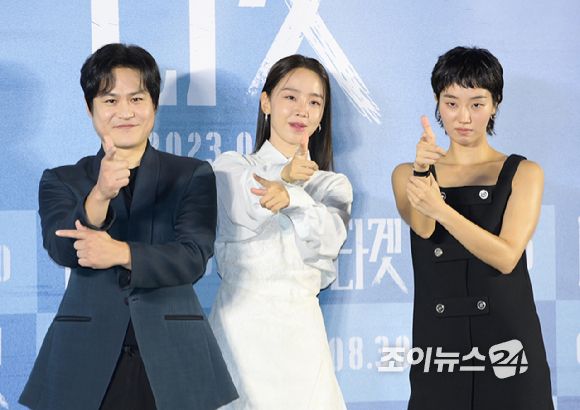 배우 김성균-신혜선-이주영이 9일 오전 서울 성동구 메가박스 성수에서 열린 영화 '타겟'(감독 박희곤) 제작보고회에 참석하고 있다. [사진=정소희 기자]