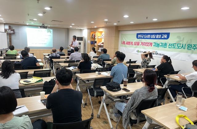 ‘나를 새롭게, 삶을 가치있게 귀농귀촌 선도도시 완주’를 주제로 진행된 이번 교육은 1:1 맞춤형 귀농귀촌 상담, 완주군 지원정책 및 귀농귀촌 사례를 전달했다.