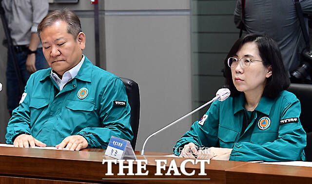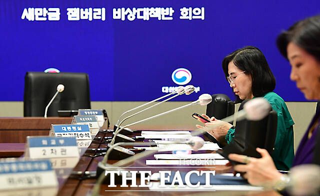 [더팩트ㅣ임영무 기자] 김현숙 여성가족부 장관이 11일 오전 서울 종로구 정부서울청사 서울상황센터에서 열린 새만금 잼버리 비상대책반 회의에 참석해 회의 자료를 살펴보고 있다.