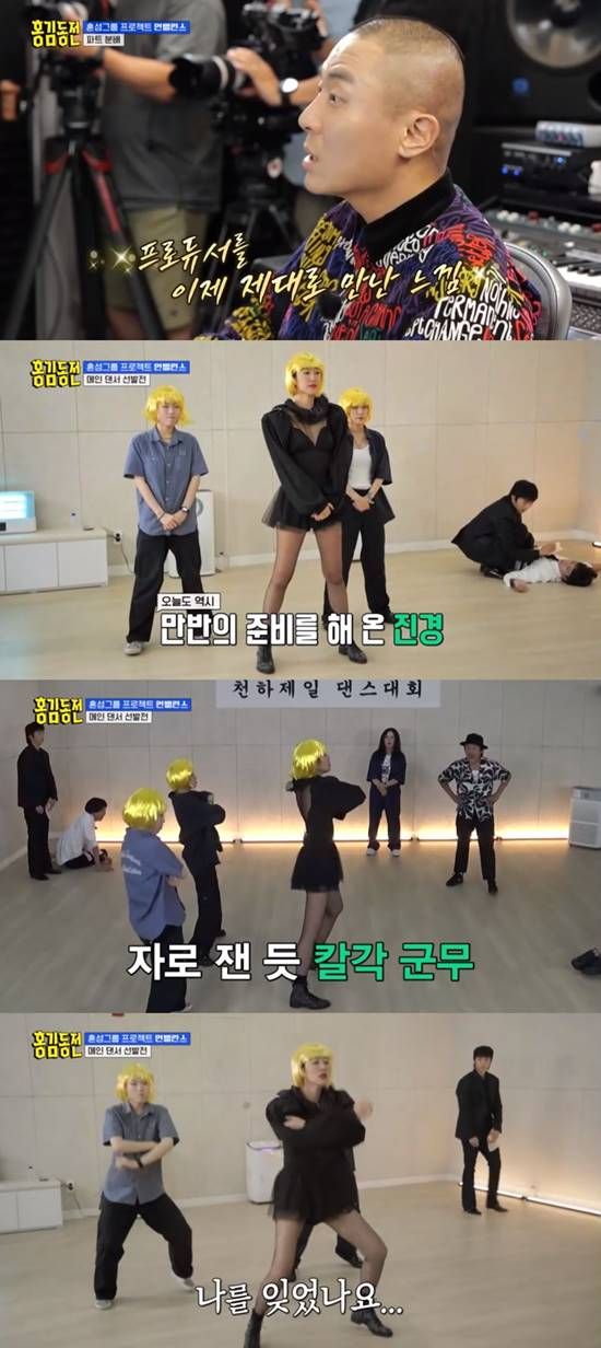 메인 댄서 선발전에서 홍진경은 몸을 아끼지 않았다. 이후 그룹 스테이씨가 실제로 사용하는 연습실에서 '천하제일 댄스대회'를 펼치게 된 홍김동전 멤버들.