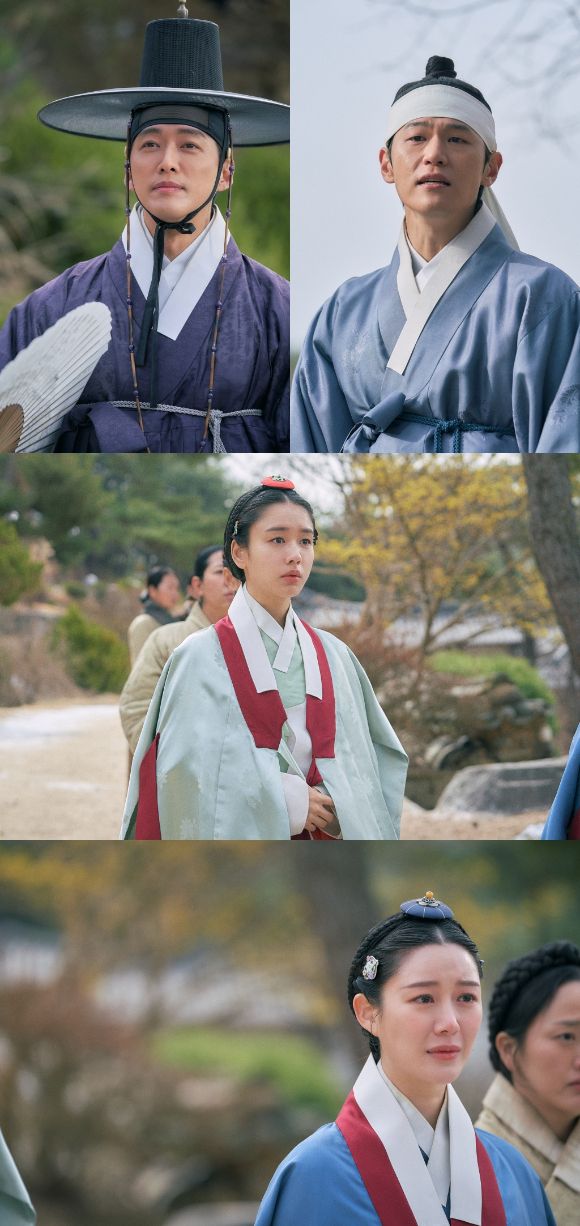 제작진은 3회 본방송을 앞두고 한 자리에 모인 이장현, 유길채, 남연준, 경은애의 모습을 공개했다. 사진 속 이장현과 남연준의 대비되는 모습이 인상적이다. 전쟁 발발과 함께 갓을 벗어던진 남연준의 굳은 표정과 달리, 이장현은 여전히 부채를 펼쳐 든 채 여유로운 표정을 짓고 있는 것. 이를 바라보는 유길채의 심각한 눈빛, 경은애의 눈물도 대비된다.