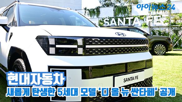 [아이뉴스24 문수지,곽영래 기자] 현대자동차가 지난 8일 경기도 파주시 미메시스 아트 뮤지엄에서 열린 '디 올 뉴 싼타페' 미디어 프리뷰에서 대표 중형 스포츠유틸리티차량(SUV) '디 올 뉴 싼타페'를 공개하고 있다.